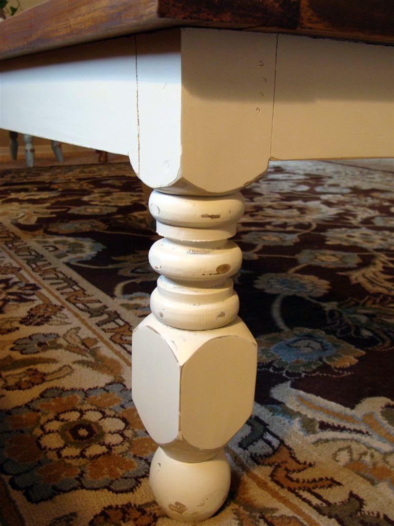 Exactly what I want to do to my coffee table, however mine doesn't have a nice walnut color to show through the distressed legs. Should I stain everything first then distress the legs or should I paint the legs and then use walnut stain as a glaze? I just worry about yellowing the white.